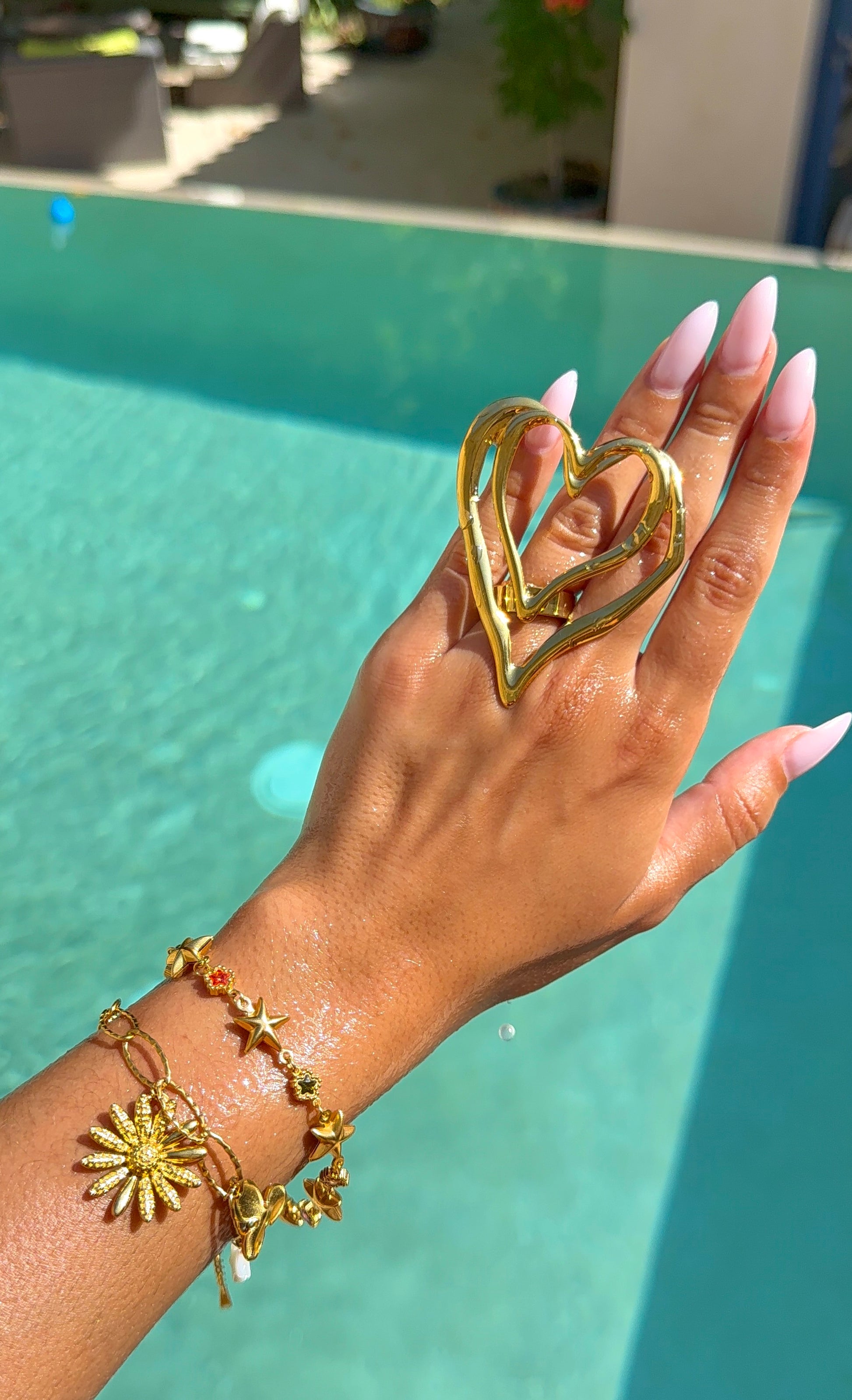 Son grand cœur doré attire le regard et sublime la main avec élégance.